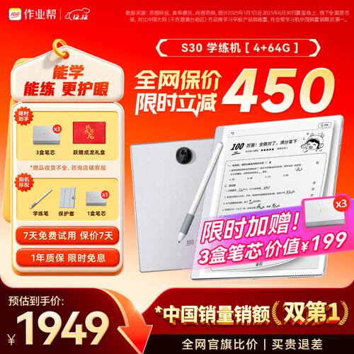 当前的位置: 首页 > 今日值得买 > 作业帮AI学练机S30【限量抢】墨水屏护眼AI学习机辅导机小学初中高中学生平板学练一体机 4+64G