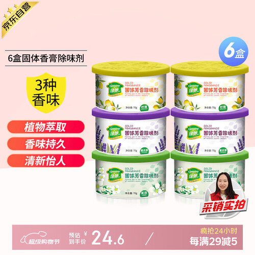 当前的位置: 首页 > 今日值得买 > 绿驰 6盒固体空气清新剂薰衣草柠檬茉莉厕所去除臭异味车室内氛芳香膏