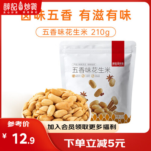 当前的位置: 首页 > 今日值得买 > 薛记炒货麻辣花生米210g 五香花生米坚果炒货休闲网红零食小吃下酒菜 五香味花生米210克*1袋