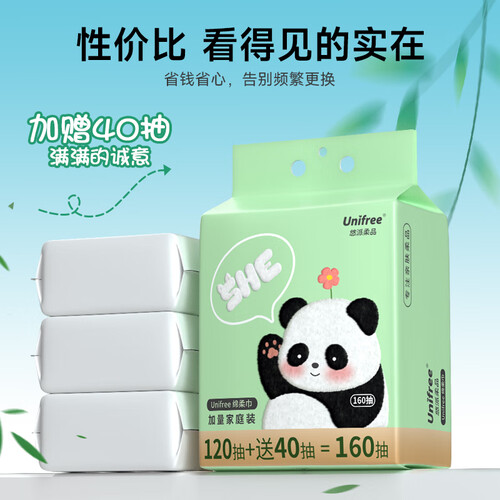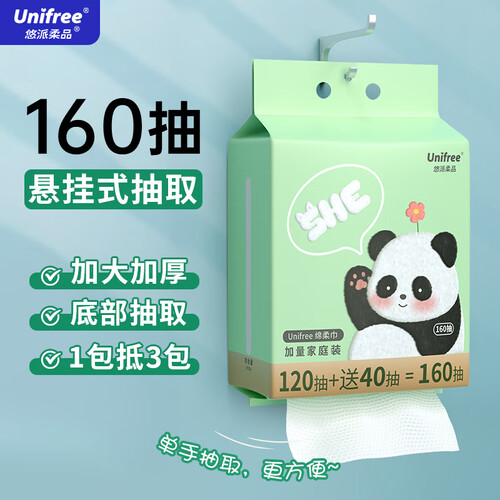 当前的位置: 首页 > 今日值得买 > unifree一次性洗脸巾加大加厚悬挂抽取式洁面擦脸巾绵柔巾160抽 抽取式悬挂式洗脸巾1提