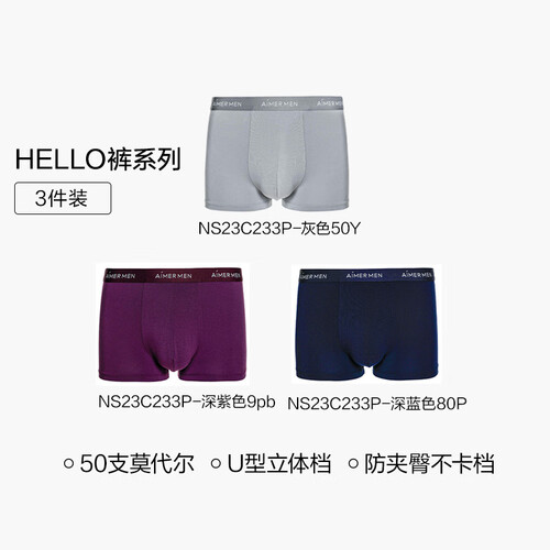 当前的位置: 首页 > 今日值得买 > 爱慕先生【3条装】透气抗菌50S莫代尔舒适大空间HELLO裤男士平角内裤 【平角裤】深蓝+深紫+灰色 3条 L (170)