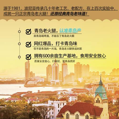 当前的位置: 首页 > 今日值得买 > 波尼亚(BERNIA)1号青岛老火腿腱子肉火腿 山东青岛特产熏烤大火腿肉肠下酒菜即食 老火腿385g【猪腱子肉制作】
