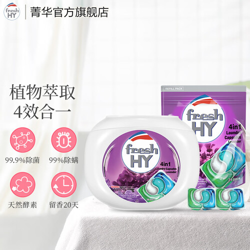 当前的位置: 首页 > 今日值得买 > 菁华洗衣凝珠fresh HY清可新4合1洗衣珠洗衣液除菌除螨持久留香 薰衣草52粒( 28粒*1盒 +24粒袋装)