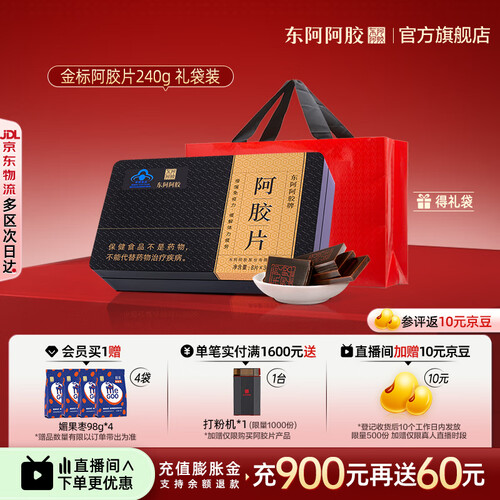 当前的位置: 首页 > 今日值得买 > 东阿阿胶官方店 金标阿胶片240g礼袋装 精选黑驴皮 阿胶块 礼物礼品 送礼 金标阿胶片240g礼袋装