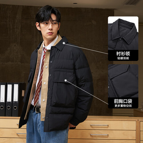 当前的位置: 首页 > 今日值得买 > gxg.jeans男装 2024年冬季黑色大口袋翻领短款羽绒服 黑色 S (165)