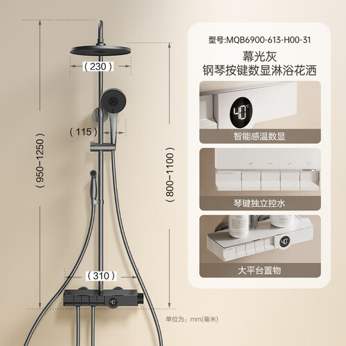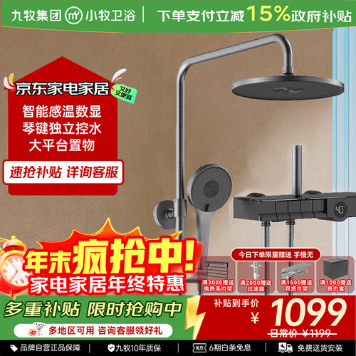 当前的位置: 首页 > 今日值得买 > 九牧(JOMOO)小牧卫浴花洒淋浴套装琴键大置物台温感数显自动除垢增压花洒6900 【枪灰】温感数显/琴键置物台