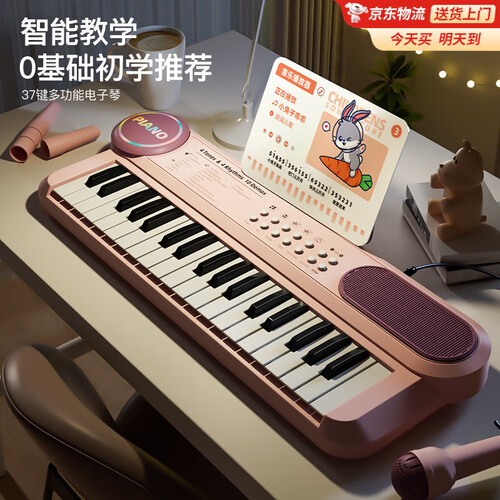贝初众电子琴儿童玩具女孩生日礼物7-14岁女童早教益智3-6-10岁宝宝钢琴 粉【增高架+琴谱架+麦克风+琴键贴+琴谱】智能教学 男孩童2-5-8-12女生小朋友4-9-11岁元旦新年圣诞节礼物