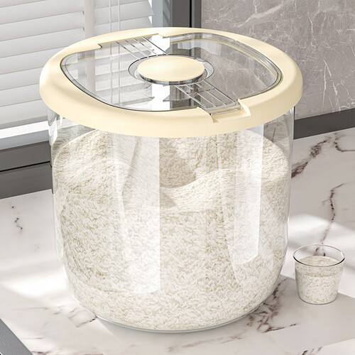当前的位置: 首页 > 今日值得买 > 加厚米桶密封储圆形米缸防虫防潮家用翻盖储米箱面粉五谷杂粮收纳 透明-奶油白 20斤装【升级加厚】赠量米杯