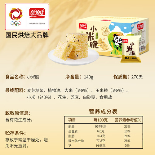 当前的位置: 首页 > 今日值得买 > 盼盼米花酥锅巴休闲解馋零食糕点整箱食品网红膨化小吃饼干 小米脆(原味)140g【约30包】