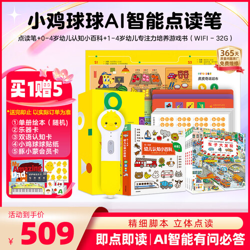 当前的位置: 首页 > 今日值得买 > PIYO PEN小鸡球球WiFi智能点读笔32G礼盒 幼儿早教宝宝认知启蒙儿童玩具 小鸡32g+小百科3册+专注力1000
