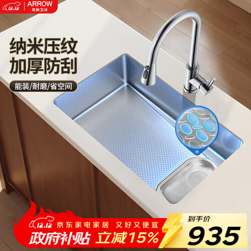 当前的位置: 首页 > 今日值得买 > 箭牌(ARROW)厨房304不锈钢水槽家用台下盆洗碗槽洗菜盆水池AE5560462G31-1YSS