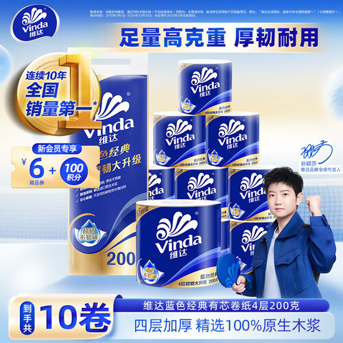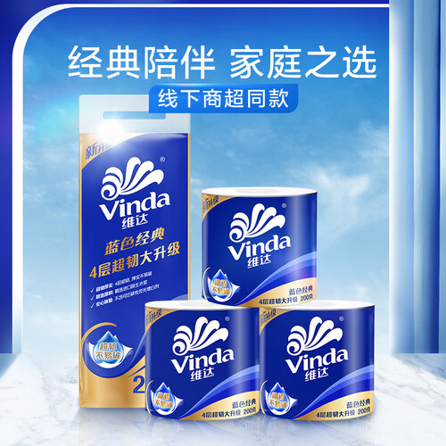 当前的位置: 首页 > 今日值得买 > 维达(Vinda) 卷纸蓝色经典有芯卷筒厕纸手纸卫生纸 厚实可冲散 4层 200g/卷*10卷