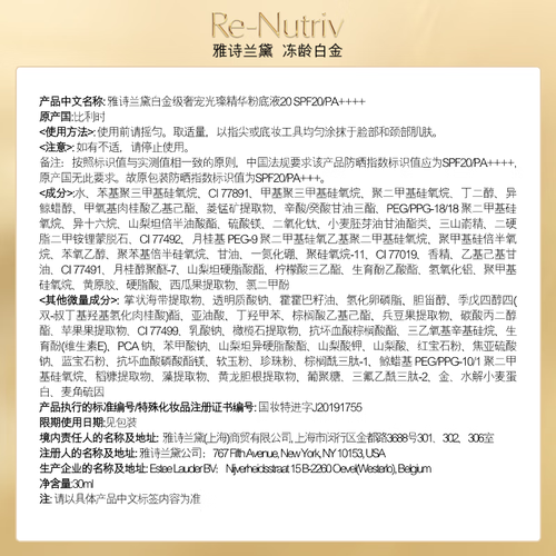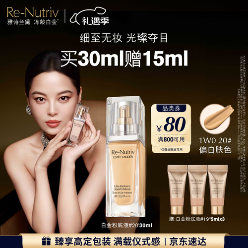 当前的位置: 首页 > 今日值得买 > 雅诗兰黛白金粉底液20#(1W0)30ml偏白肤色遮瑕化妆品礼盒护肤品圣诞礼物