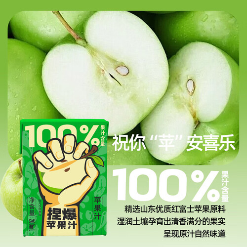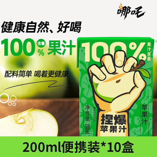 当前的位置: 首页 > 今日值得买 > 哪吒捏爆100%苹果青提甜橙纯椰子水白桦树汁果汁早餐下午茶聚餐饮料品 捏爆100%苹果汁200ml*10盒 哪吒捏爆果汁