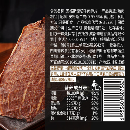 当前的位置: 首页 > 今日值得买 > 蜀道香牛肉脆片 牛脆脆 休闲零食牛肉干薄切风干牛肉低负担健身减脂零食 【安格斯】36g/袋