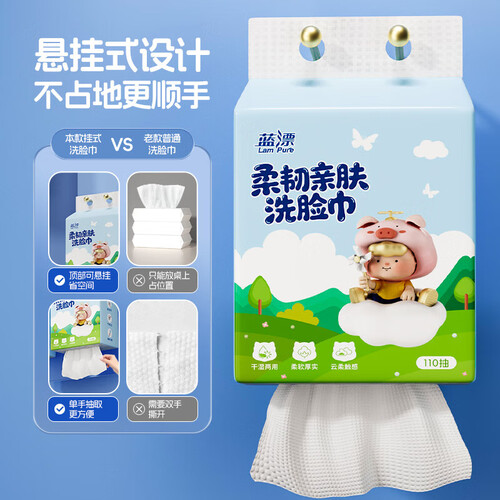 当前的位置: 首页 > 今日值得买 > 蓝漂洗脸巾悬挂式一次性洁面巾加厚擦脸巾绵柔巾干湿两用亲肤绵柔 110抽*6提