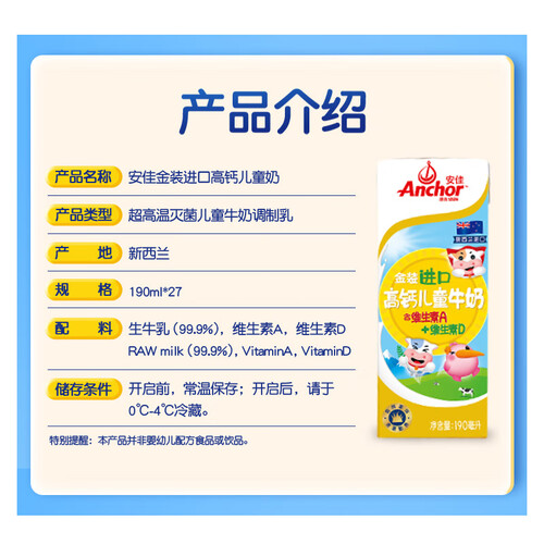 当前的位置: 首页 > 今日值得买 > 安佳新西兰原装进口金装高钙优质乳蛋白儿童牛奶维生素A/D纯牛奶 【爆款】金装儿童牛奶27x190ml