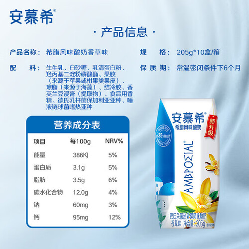 当前的位置: 首页 > 今日值得买 > 安慕希伊利香草风味酸奶营养早餐整箱常温生牛乳牛奶乳品早餐礼品礼盒装 大溪地香草205gx10盒x2箱9月产
