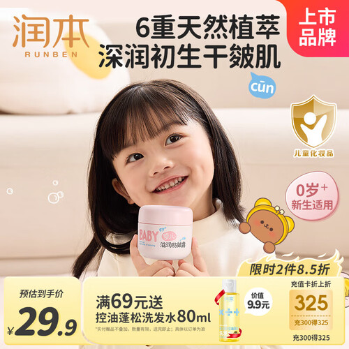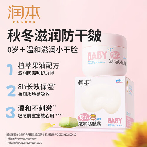 当前的位置: 首页 > 今日值得买 > 润本(RUNBEN)婴儿面霜儿童宝宝保湿润肤霜擦脸身体乳婴幼儿秋冬滋润防皴霜50g