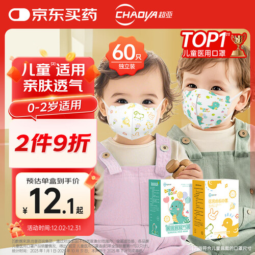 当前的位置: 首页 > 今日值得买 > 超亚儿童3d立体医用外科口罩0-2岁秋冬季防过敏保暖小孩独立包装60只