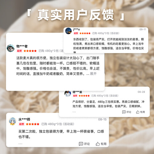 当前的位置: 首页 > 今日值得买 > 【鲨鱼菲特同厂】有机燕麦片0蔗糖低脂GI 0添加免煮原味独立小包 30g*48袋(实惠装)