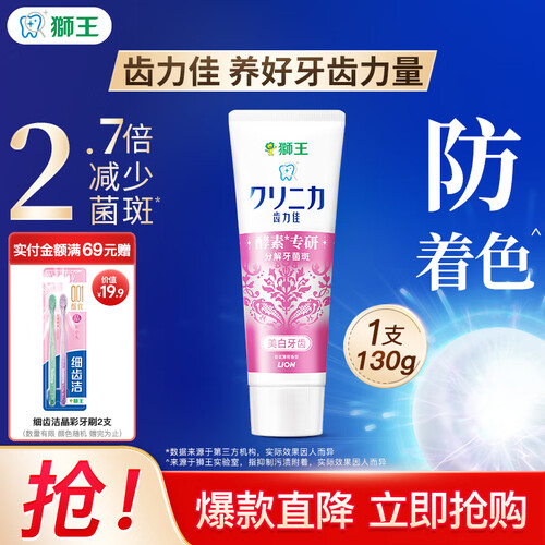 当前的位置: 首页 > 今日值得买 > 狮王(Lion)齿力佳高活酵素美白牙膏 分解牙渍 净白牙齿 百花薄荷130g【效期至26年6月】