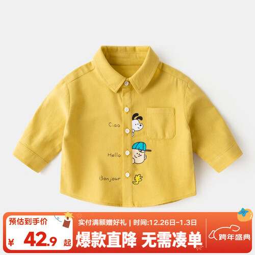 当前的位置: 首页 > 今日值得买 > 嘟嘟家儿童秋装衬衫宝宝卡通衬衣小童童装男童洋气上衣婴儿秋款女童衣服 黄色 80