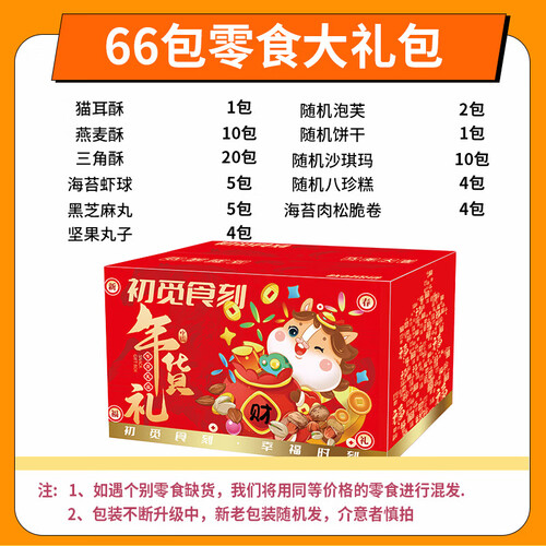 当前的位置: 首页 > 今日值得买 > 【送礼甄选】三只松鼠同厂零食大礼包中式糕点组合圣诞年货送礼 【年货礼】11款共66包 1箱装