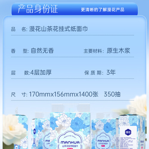当前的位置: 首页 > 今日值得买 > 漫花悬挂式抽纸底部抽取式纸面巾4层350抽加量装卫生纸厕纸家用擦手纸 山茶花 4层 1400张*6提