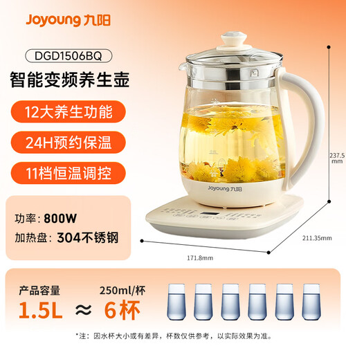 当前的位置: 首页 > 今日值得买 > 九阳(Joyoung)养生壶迷你玻璃花茶壶煮茶器 12大功能11档温度 0胶水恒温电热烧水壶1.5L 1566BQ