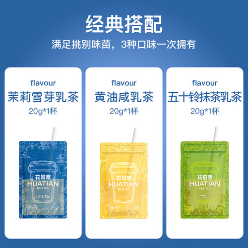 当前的位置: 首页 > 今日值得买 > 花田萃爆款3风味3杯茉莉雪芽抹茶奶茶黄油咸乳牛乳奶茶粉60g/盒