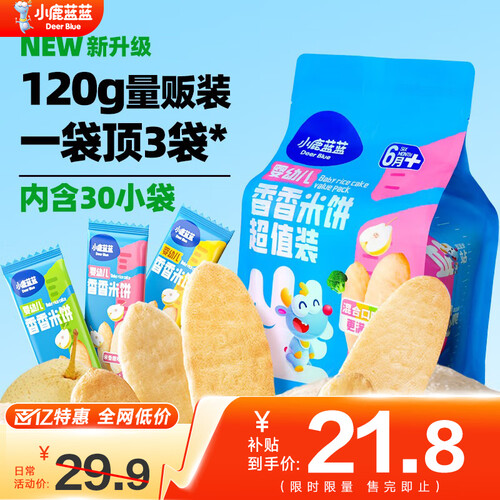 当前的位置: 首页 > 今日值得买 > 小鹿蓝蓝婴幼儿香香米饼 宝宝零食营养辅食温和磨牙米饼 入口易溶儿童零食 【6月+】混合口味60片120g