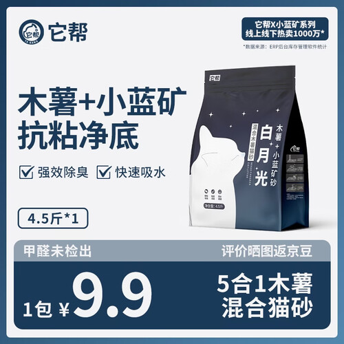 当前的位置: 首页 > 今日值得买 > 小蓝矿【木薯砂混合小蓝矿】它帮钠基矿砂猫砂家用猫砂防臭除臭低尘猫砂 【防粘防臭】小蓝矿混合木薯4.5斤*1袋