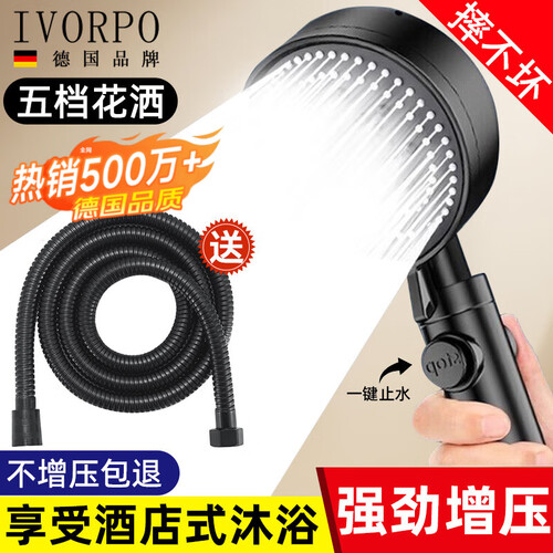 当前的位置: 首页 > 今日值得买 > IVORPO【德国】增压淋浴花洒喷头全套装强劲家用多功能洗澡手持莲蓬头 五档黑色花洒+1.5米防爆软管 【强劲增压丨密集大出水】