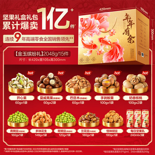 当前的位置: 首页 > 今日值得买 > 良品铺子坚果礼盒年货干果开心果新年过年礼盒礼品送长辈零食大礼包春节 【两箱更划算】金玉缤纷礼2045g*2箱 .