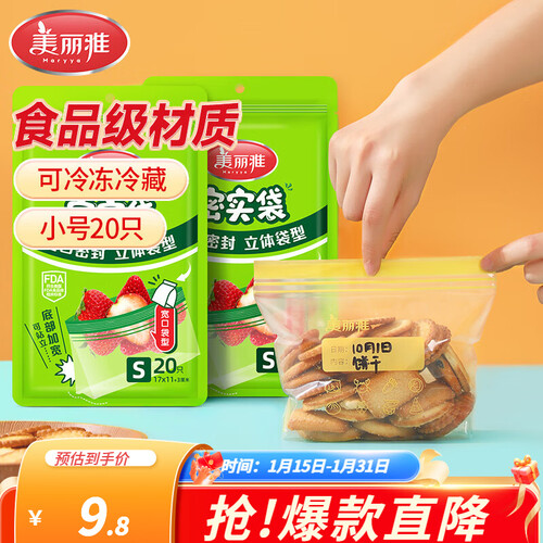 当前的位置: 首页 > 今日值得买 > 美丽雅可站立收纳袋 加厚食品自封袋 家用厨房收纳袋可冷冻微波炉 【宽口收纳迷你袋】20只
