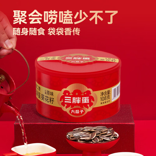 当前的位置: 首页 > 今日值得买 > 三胖蛋原味瓜子葵花籽瓜子罐装休闲零食热卖坚果炒货内蒙古 原味108g*4罐