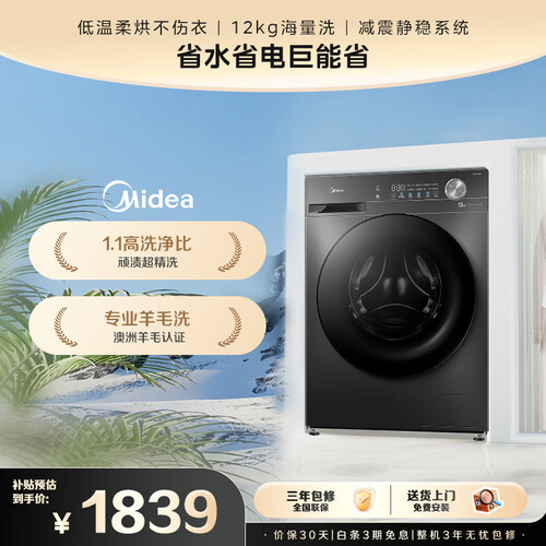 当前的位置: 首页 > 今日值得买 > 美的(Midea)全自动洗衣机滚筒带烘干一体12公斤大容量 单洗/洗烘一体一级能效1.1高洗净比 焕新补贴以旧换新 MD120V36T 洗烘一体