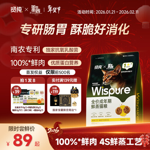 当前的位置: 首页 > 今日值得买 > 贤纯猫粮 全价鲜蒸成猫粮高鲜肉高消化好护肠胃专利益生菌 【国家宝藏】1岁+鲜蒸全价鸡肉猫粮1.5kg