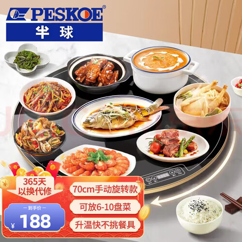 当前的位置: 首页 > 今日值得买 > 半球(PESKOE)暖菜板家用热菜板快速升温 大面积旋转加热板 饭菜保温板饭菜保温神器烘干解冻暖奶 可旋转款(可放6-10盘) 70cm