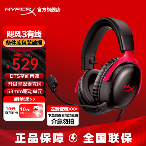 当前的位置: 首页 > 今日值得买 > 极度未知(HYPERX)【已拆封】飓风2飓风3云雀2阿尔法游戏耳机电竞耳机有线笔记本电脑手机fps吃鸡csgo游戏耳麦 飓风3有线黑红【备件库包装破损】