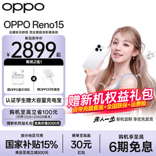 当前的位置: 首页 > 今日值得买 > OPPO【国家补贴15%】Reno15 实况神机 手机新品上市 星光蝴蝶结 12GB+256GB 官方标配【全网联保】