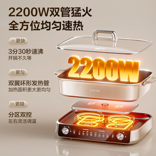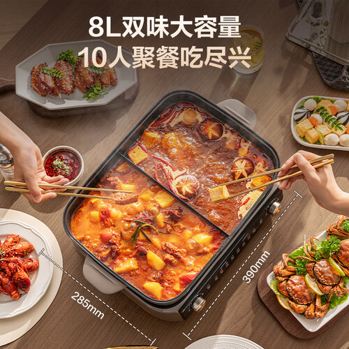 当前的位置: 首页 > 今日值得买 > 苏泊尔(SUPOR)电火锅小钛阳0氟有钛鸳鸯锅8L大容量家用多功能锅分区双控火锅专用锅2200W猛火电煮锅 H80FK980Y