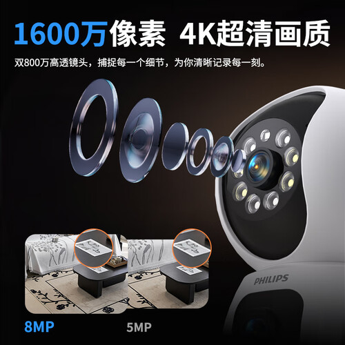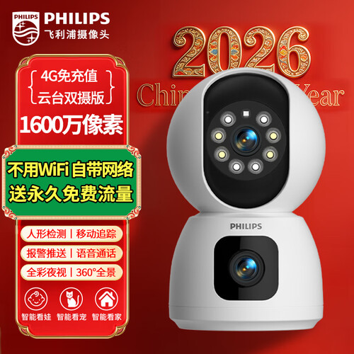 当前的位置: 首页 > 今日值得买 > 飞利浦(PHILIPS)摄像头家用监控器360度无死角带夜视全景监控无需连wifi终身免流量手机远程可对话室内高清监视器 4G免充值双摄+7天循环录像+终身免费流量