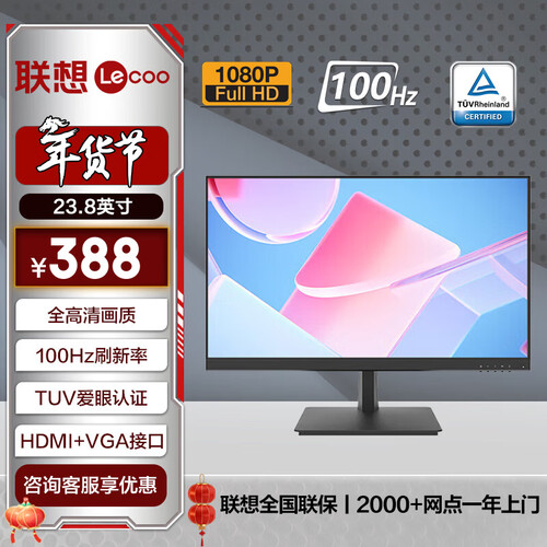 当前的位置: 首页 > 今日值得买 > 联想 21.5/23.8英寸显示器 全高清 TUV护眼认证 低蓝光不闪屏 HDMI+VGA 微边框 家用办公电脑显示屏幕 23.8英寸/100Hz刷新率