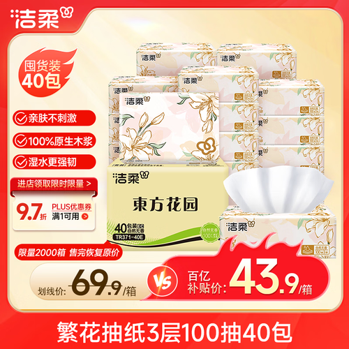 当前的位置: 首页 > 今日值得买 > 洁柔繁花抽纸 柔韧纸巾3层100抽*40包 可湿水面巾纸 纸巾卫生纸 整箱