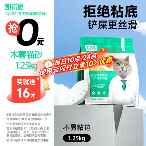 当前的位置: 首页 > 今日值得买 > 凯锐思奶香木薯猫砂木薯不粘底高效结团强吸水除臭猫砂1.25kg