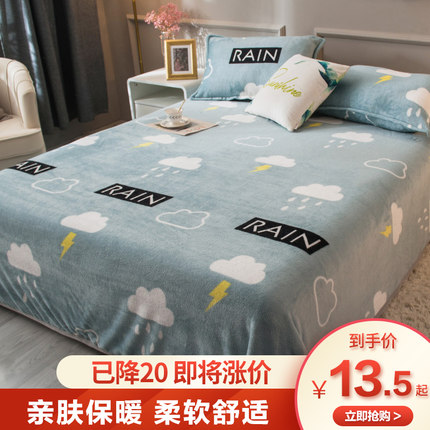 加厚加绒法兰绒床单单件毛绒珊瑚绒牛奶水晶绒面夹棉被单单人双人 【在售价】26.90 元 【券后价】23.90元