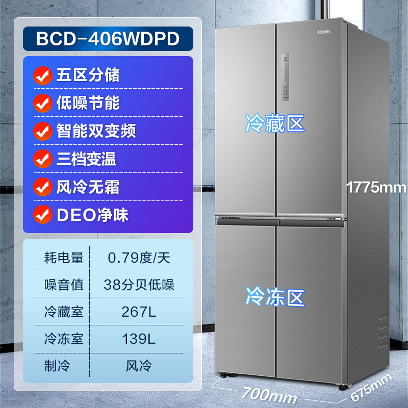 海尔 (Haier) 328升风冷无霜超薄变频四门多门法式家用电冰箱一级能效三档变温全开抽屉节能低噪BCD-328WDPD京东 推荐人: 丁丁小编 发布时间:2022-09-27 13:09:41
