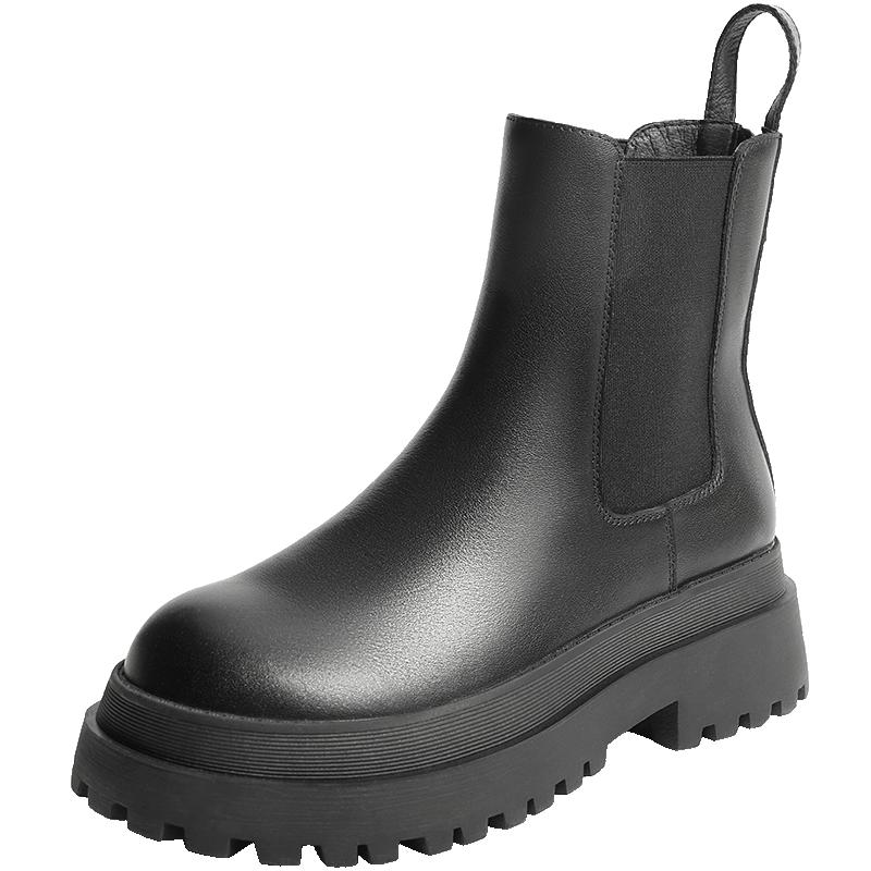 更多百丽切尔西靴女新款女靴冬英伦风厚底短靴加绒烟筒靴子X2G2DDD3